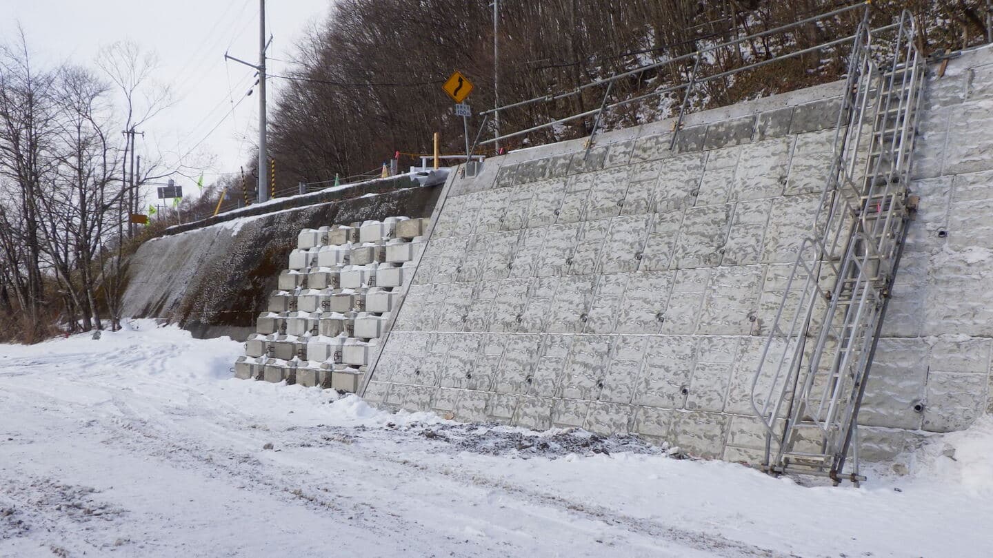 既存ブロックを一時撤去後、新設するために取り壊す既存擁護壁の