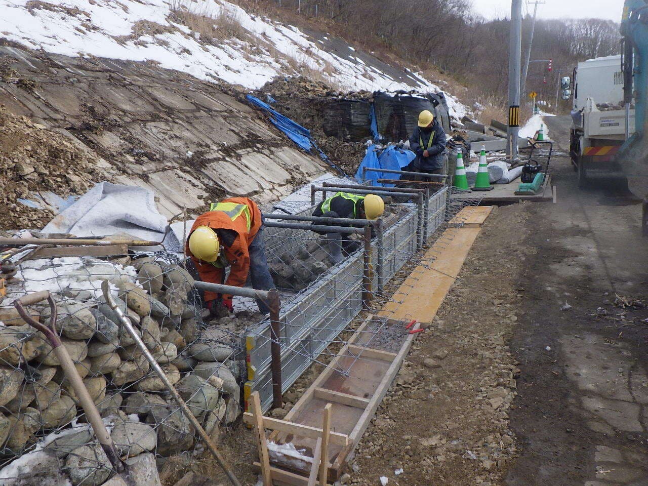 ② ふとん籠の組立(かご枠の設置)&石材の投入・充填