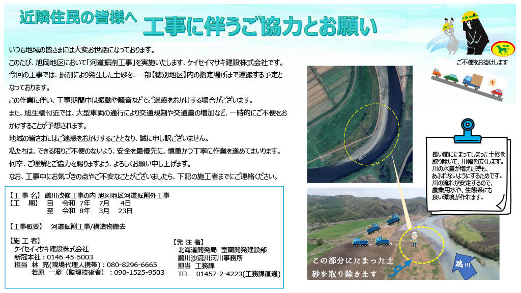 鵡川改修工事の内旭岡地区河道掘削外工事